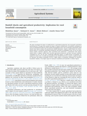 2018Rainfall shocks and agricultural productivity: Implication for rural household consumptionAmare, MulubrhanJensen, Nathaniel D.Shiferaw, BekeleCissé, J.D.
