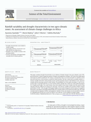 2018Rainfall variability and drought characteristics in two agro-climatic zones: An assessment of climate change challenges in AfricaAyanlade, AyansinaRadeny, Maren A.O.Morton, John F.Muchaba, Tabitha