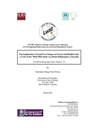 2003The implications of changes in land use on forests and biodiversity: a case of the "Half Mile Strip" on Mount Kilimanjaro, TanzaniaWilliam, C.M.