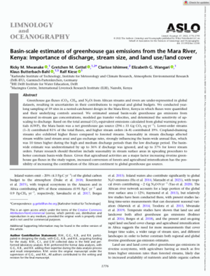 2022Basin‐scale estimates of greenhouse gas emissions from the Mara River, Kenya: Importance of discharge, stream size, and land use/land coverMwanake, Ricky M.Gettel, Gretchen M.Ishimwe, ClarisseWangari, Elizabeth G.Butterbach-Bahl, KlausKiese, Ralf