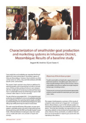 Boogaard, B.K., Hendrickx, S.C.J. and Swaans, K. 2012. Characterization of smallholder goat production and marketing systems in Inhassoro District, Mozambique: Results of a baseline study. ILRI Research Brief 1. Nairobi, Kenya: ILRI.