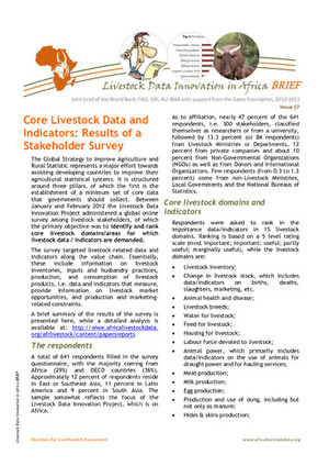 Baker, D., Morgan, N. and Pica-Ciamarra, U. 2013. Core livestock data and indicators: Results of a stakeholder survey. Livestock Data Innovation in Africa Brief 17. Rome, Italy: FAO.