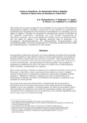 Schoonhoven, A.D.; Holmann, F.; Argel, P.; Perez, E.; Ordoñez, J.C.; Chaves, J. 2005. Costos y beneficios de suministrar heno y ensilaje durante la época seca en Honduras y Costa Rica. CIAT Documento de trabajo 203. Cali (Colombia): CIAT