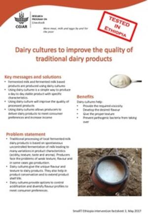 Hilali, M. El-Dine., Rischkowsky, B. and Wieland, B. 2017. Dairy cultures to improve the quality of traditional dairy products. SmaRT Ethiopia intervention factsheet 3. Addis Ababa: ICARDA.