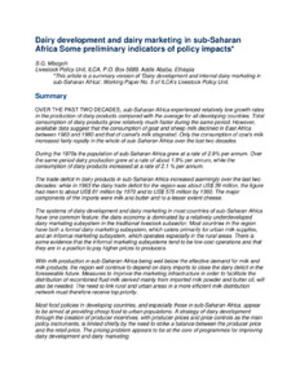 Dairy development and dairy marketing in sub-Saharan Africa: Some preliminary indicators of policy impacts