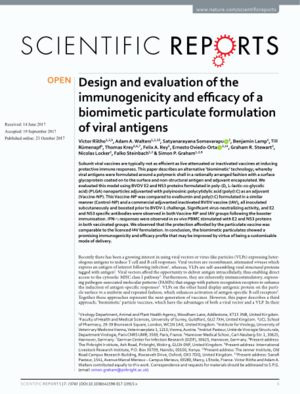 Riitho, Victor; Walters, Adam A.; Somavarapu, Satyanarayana; Lamp, Benjamin; Rümenapf, Till; Krey, Thomas; Rey, Felix A.; Oviedo-Orta, Ernesto; Stewart, Graham R.; Locker, Nicolas; Steinbach, Falko; Graham, Simon P. 2017. Design and evaluation of the immunogenicity and efficacy of a biomimetic particulate formulation of viral antigens. Scientific Reports 7: