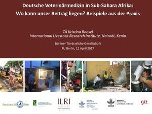Roesel, K. 2017. Deutsche Veterinärmedizin in Sub-Sahara Afrika: Wo kann unser Beitrag liegen? Beispiele aus der Praxis. Invited presentation at the Berlin Veterinary Association (Berliner Tierärztliche Gesellschaft), Berlin, Germany, 12 April 2017. Nairobi, Kenya: ILRI.