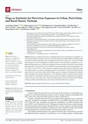 Long Pham-Thanh, Thang Nguyen-Tien, Magnusson, U., Vuong Bui-Nghia, Anh Bui-Ngoc, Duy Le-Thanh, Lundkvist, Å., Minh Can-Xuan, Thuy Nguyen-Thi Thu, Hau Vu-Thi Bich, Hu Suk Lee, Hung Nguyen-Viet and Lindahl, J. 2021. Dogs as sentinels for flavivirus exposure in urban, peri-urban and rural Hanoi, Vietnam. Viruses 13(3): 507.