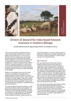Takahashi, K., Ikegami, M., Sheahan, M. and Barrett, C.B. 2017. Drivers of demand for index-based livestock insurance in southern Ethiopia. ILRI Research Brief 73. Nairobi, Kenya: ILRI.