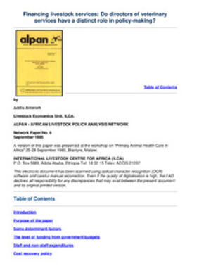 Financing livestock services: Do directors of veterinary services have a distinct role in policy-making?