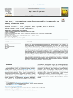Nicholson, C.F.; Stephens, E.C.; Kopainsky, B.; Thornton, P.K.; Jones, A.D.; Parsons, D.; Garrett, J. (2021) Food security outcomes in agricultural systems models: Case examples and priority information needs. Agricultural Systems 188: 103030 ISSN: 0308-521X