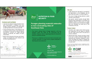 Leyte, J.D., Delaquis, E., Pham Van Dung and Douxchamps, S. 2020. Forages planting material networks in two contrasting sites of Southeast Asia. Poster prepared for the Virtual Livestock CRP Planning Meeting, 8-17 June 2020. Cali, Colombia: Alliance of Bioversity International and CIAT.