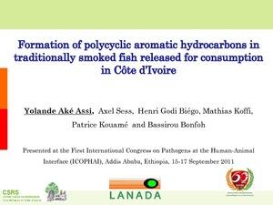 Aké-Assi, Y., Sess, A., Biégo, H.G., Koffi, M., Kouamé, P. and Bonfoh, B. 2011. Formation of polycyclic aromatic hydrocarbons in traditionally smoked fish released for consumption in Côte d’Ivoire. Presented at the First International Congress on Pathogens at the Human-Animal Interface (ICOPHAI), Addis Ababa, Ethiopia, 15-17 September 2011.