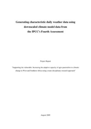 Jones, P.G.; Thornton, P.K.; Heinke, J. 2009. Generating characteristic daily weather data using downscaled climate model data from the IPCC's fourth assessment. Project Report. Nairobi (Kenya): ILRI