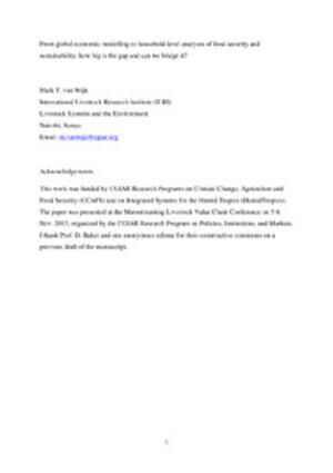 Wijk, M.T. van. 2014. From global economic modelling to household level analyses of food security and sustainability: How big is the gap and can we bridge it? Food Policy 49(2):378-388.
