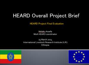 Assefa, M. 2024. Health of Ethiopian Animals for Rural Development (HEARD) overall project brief. Presentation at the HEARD project final evaluation workshop, Addis Ababa, Ethiopia, 25 March 2024. Nairobi, Kenya: ILRI and Addis Ababa, Ethiopia: Ministry of Agriculture.
