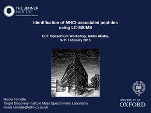 Ternette, N. 2015. Identification of MHCI-associated peptides using LC-MS/MS. Presented at the ECF Consortium Workshop, Addis Ababa, 9-11 February 2015. Oxford, UK: Oxford University.