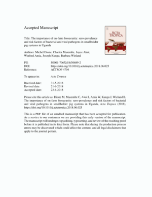 The importance of on-farm biosecurity: Sero-prevalence and risk factors of bacterial and viral pathogens in smallholder pig systems in Uganda