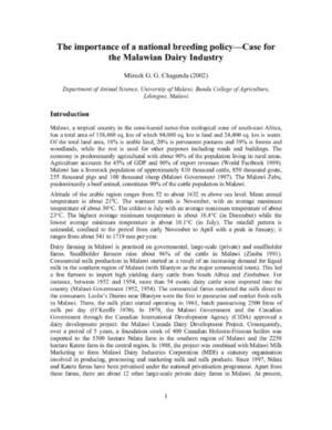 Chagunda, M.G.G. 2002. The importance of a national breeding policy-Case for the Malawian Dairy Industry. AGTR Case Study. Nairobi, Kenya: ILRI.
