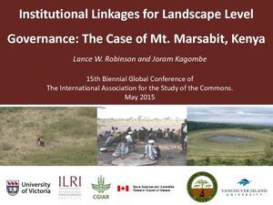 Robinson, L.W. and Kagombe, J. 2015.Institutional linkages for landscape level governance: The case of Mt. Marsabit, Kenya. Presented at the 15th Biennial Global Conference of the International Association for the Study of the Commons, Edmonton, Canada, 25–29 May 2015. Nairobi, Kenya: ILRI.