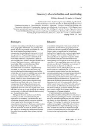 Inventory of species and breeds, their population sizes, geographic distribution and possibly their genetic diversity is generally undertaken as a first step in any national programme for the management of animal genetic resources for food and agriculture. The primary purpose of such an assessment is to document the current state of knowledge in terms of a population's ability to survive, reproduce, produce and provide services to farmers. Starting an inventory requires some knowledge of the inventory items and their characteristic attributes. Inventory and characterization are, therefore, complementary processes, in which the characterization step provides the baseline information as well as the criteria that will be used to establish and update the inventory. Characterization provides data on present and potential future uses of the animal genetic resources under consideration, and establishes their current state as distinct breed populations and their risk status. As use and management of animal genetic resources are dynamic processes, monitoring the status of a population has to be done on a regular basis. Thus, risk status indicators for use during the monitoring process need to be defined following the inventory and characterization steps.This paper discusses methods and criteria currently available, from research and past experience, for inventory, characterization and monitoring of animal genetic resources, with the view to assist in the development of a more comprehensive framework. Particular consideration is given to emerging tools and technologies. The scope of the review includes all livestock species and their wild ancestors and wild related species. Examples focus on cattle, sheep, goats, pigs and chickens.