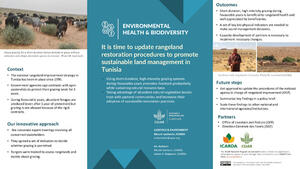 Louhaichi, M., Gamoun, M. and Belgacem, A.O. 2020. It is time to update rangeland restoration procedures to promote sustainable land management in Tunisia. Poster prepared for the Virtual Livestock CRP Planning Meeting, 8-17 June 2020. Addis Ababa: Ethiopia: ICARDA.