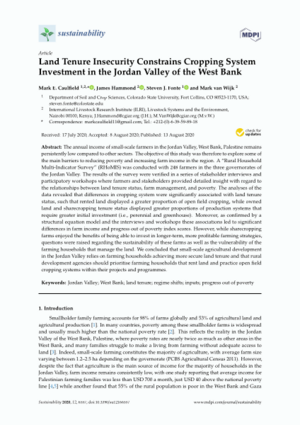 Caulfield, Mark E.; Hammond, James; Fonte, Steven J.; Wijk, Mark T. van. 2020. Land Tenure Insecurity Constrains Cropping System Investment in the Jordan Valley of the West Bank. Sustainability 12: 6557