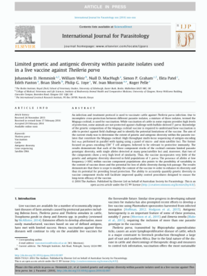 Limited genetic and antigenic diversity within parasite isolates used in a live vaccine against Theileria parva