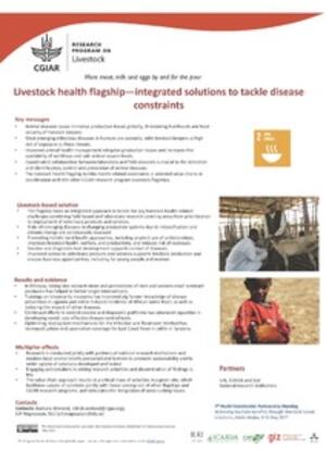 CGIAR Research Program on Livestock. 2017. Livestock health flagship—Integrated solutions to tackle disease constraints. Poster prepared for the 7th Multi-Stakeholder Partnership Meeting of the Global Agenda for Sustainable Livestock, Addis Ababa, Ethiopia, 8–12 May 2017. Nairobi, Kenya: ILRI.
