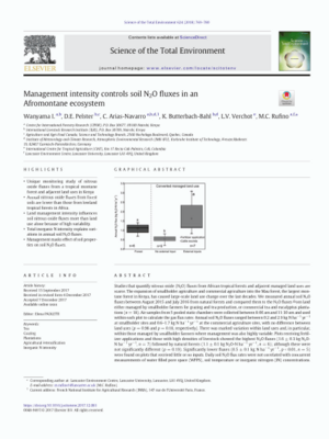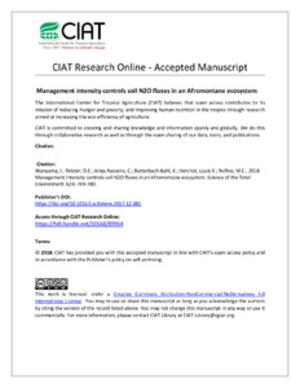 Wanyama, I., Pelster, D.E., Arias-Navarro, C., Butterbach-Bahl, K., Verchot, L.V. and Rufino, M.C. 2018. Management intensity controls soil N2O fluxes in an Afromontane ecosystem. Science of The Total Environment 624:769–780.