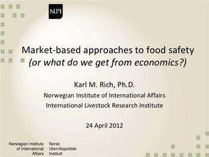 Rich, K.M. 2012. Market-based approaches to food safety. Presentation at an international South-South symposium on Managing Risks in Emerging Pork Markets, Hanoi, Vietnam, 23-25 April 2012.