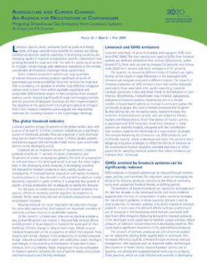 Herrero, M. and Thornton, P.K. 2009. Mitigating greenhouse gas emissions from livestock systems. In: Agriculture and Climate Change: An Agenda for Negotiation in Copenhagen. IFPRI Focus 16. Brief 6, May 2009. Washington, DC: IFPRI. https://hdl.handle.net/10568/110778