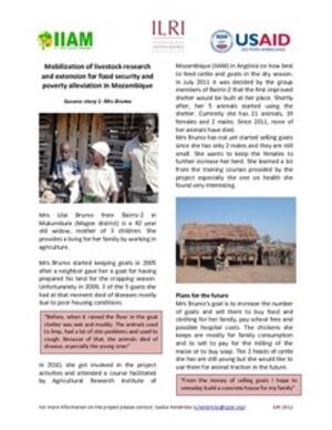 ILRI. 2012. Mobilization of livestock research and extension for food security and poverty alleviation in Mozambique: Success Story 1: Mrs Brumo. Nairobi, Kenya: ILRI.