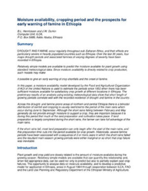 Estimates moisture availability in Ethiopia since 1953, using a model developed by the FAO; correlates results of the analysis using existing meteorological data with the recorded incidence of drought and famine.