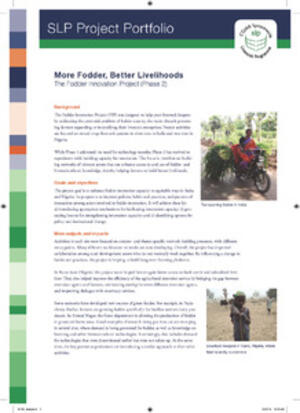 ILRI. 2010. More Fodder, Better Livelihoods: The Fodder Innovation Project (Phase 2). CGIAR Systemwide Livestock Programme, Project Flyer. Nairobi (Kenya): ILRI.