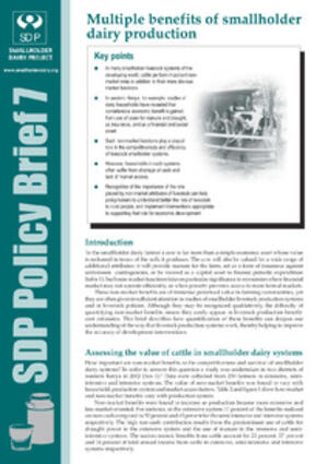 Smallholder Dairy Project. 2005. Multiple benefits of smallholder dairy production. SDP Policy Brief 7. Nairobi (Kenya): Smallholder Dairy (R&D) Project