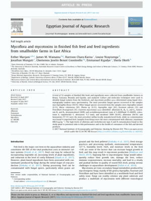Marijani, E., Wainaina, J.M., Charo-Karisa, H., Nzayisenga, L., Munguti, J., Gnonlonfin, G.J.B., Kigadye, E. and Okoth, S. 2017. Mycoflora and mycotoxins in finished fish feed and feed ingredients from smallholder farms in East Africa. Egyptian Journal of Aquatic Research 43(2):169-176.