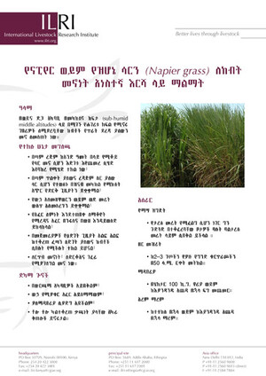 ILRI. 2010. Napier or elephant grass ILRI 14984 (Pennisetum purpureum) for livestock feed on small-scale farms (Amharic Version). Nairobi (Kenya): ILRI.