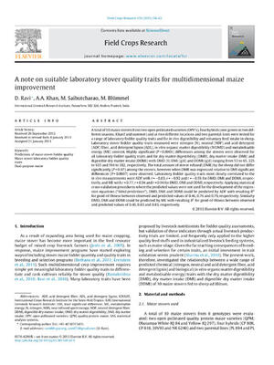 Ravi, D., Khan, A.A., Sai Butcha Rao, M. and Blümmel, M. 2013. A note on suitable laboratory stover quality traits for multidimensional maize improvement. Field Crops Research 153: 58-62.