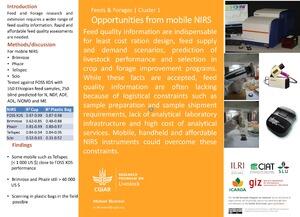 Blummel, M. 2019. Opportunities from mobile NIRS. Poster prepared for the Feed and Forage Annual Flagship Meeting, Hanoi, Vietnam, May 2019. Nairobi, Kenya: ILRI.