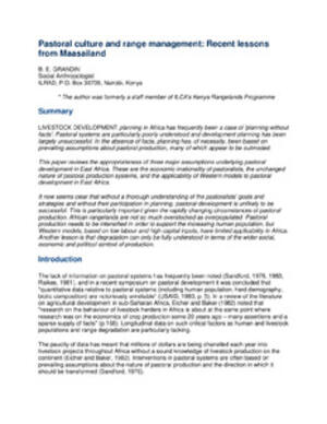 Pastoral culture and range management: Recent lessons from Maasailand