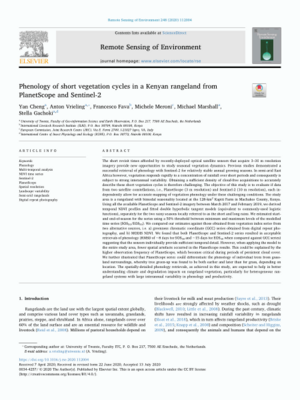 Cheng, Yan; Vrieling, Anton; Fava, Francesco; Meroni, Michele; Marshall, Michael; Gachoki, Stella. 2020. Phenology of short vegetation cycles in a Kenyan rangeland from PlanetScope and Sentinel-2. Remote Sensing of Environment 248: 112004