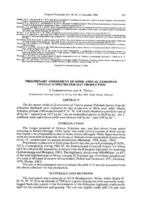 Preliminary assessment of some annual Ethiopian Trifolium species for hay production