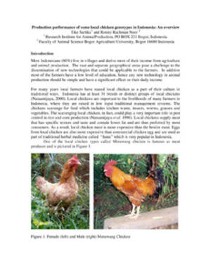 Sartika, T. and Noor, R.R. 2005. Production performance of some local chicken genotypes in Indonesia: An overview. AGTR Case Study. Nairobi, Kenya: ILRI.