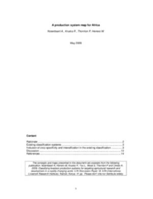A production system map for AfricaWorking PaperPublished onMay 2009byInternational Livestock Research InstituteCitation Notenbaert, A., Kruska, R., Thornton, P. and Herrero, M. 2009. A production system map for Africa. 17p. Nairobi (Kenya): ILRI.AuthorsNotenbaert, An Maria OmerKruska, R.L.Thornton, Philip K.Herrero, Mario T. farming systemscrop-livestockgeodatalivestockrangelands