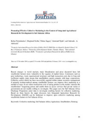 Nyikahadzoi, K., Siziba, S., Sagary, N., Njuki, J. and Adekunle, A.A. 2011. Promoting effective collective marketing in the context of integrated agricultural research for development in sub saharan Africa. Journal of Agriculture and Environmental Studies 2(1):82-97
