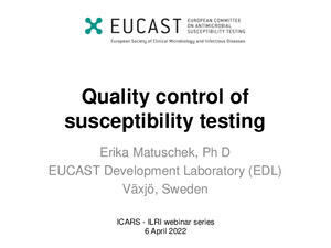 Matuschek, E. 2022. Quality control of susceptibility testing (Part 2). Presented at an ILRI-ICARS webinar, 6 April 2022. Växjö, Sweden: EUCAST.