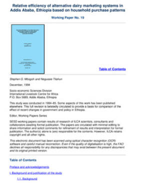 This report presents the findings of the study of the dairy marketing systems that cater primarily for the consuming households in Addis Ababa, Ethiopia. The study is part of a series of studies of dairy marketing systems in sub-Saharan Africa. Topics covered in the discussion of this paper are, the purchase patterns and the efficiency of the alternative marketing systems for liquid milk; the identification of alternative milk and butter marketing systems in Addis Ababa; the relative importance of the alternative milk and butter systems by city zone; and the relative efficiency of alternative milk and butter marketing systems.