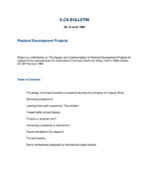 Report on a workshop on the design and implementation of pastoral development projects for tropical Africa