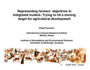 Thornton, P. K. Representing farmers' objectives in integrated models: Trying to hit a moving target for agricultural development. Presented at the 58th Annual Meeting of the European Association For Animal Production, Dublin, Ireland, 26-29 August 2007. Nairobi: ILRI